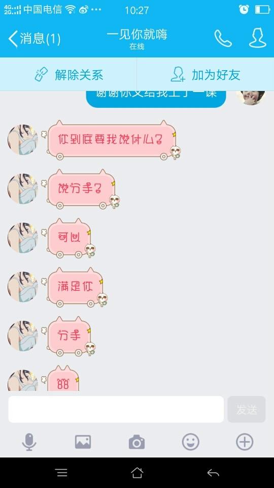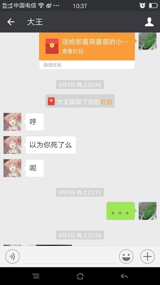 那天情人节!啊不,是七夕,她居然主动打电话给我了好像是这样,别人都在秀,我的男友秀消失,天呐,我刚还了上几个月借下的债务!她要五二零(我一个月只发生活费一千),没人借,算计到家人身上来,瞧瞧我这废物样!找老妈要了伍佰五十