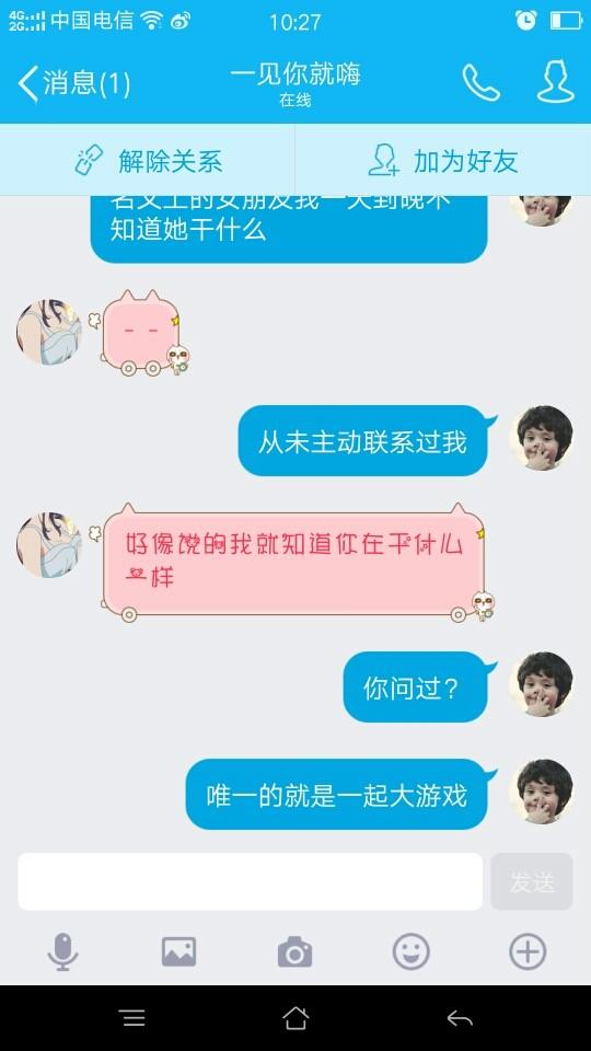 没关系在说回来,后来一天告诉我她粑粑让她去超市上班(也是有关系的),我挺开心的却要装作哎呦,别太辛苦啊!毕竟玩游戏不是正事(道理都 懂),那样持续了一个月,我上班她睡觉,我睡觉她下班,我讨厌女孩子夜班,真的讨厌,你踏马不知道熬夜对女孩子皮肤不好吗,熬夜不知道对大姨妈不好吗!还 是每天打电话问问她
