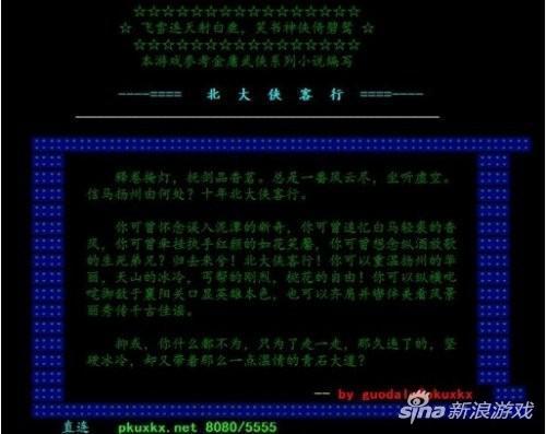 1996年,北大物理楼的一台服务器上,曾运行着一款至今都活跃在国内玩家中的游戏,这就是堪称国内MUD游戏代表和先锋的——《北大侠客行》。是的,受限于当时电脑的图形表达和网络承载能力,中国第一批网吧中流行的网络游戏,正是如今年轻玩家看起来非常简陋的文字MUD游戏。由于《北大侠客行》等一众当时主流的MUD游戏过程全部都以玩家自行编辑文字和字符的形式来完成,所以玩MUD游戏又被玩家贴切的称之为“抹泥巴”,意思就在于用自己的意志一步步地来构筑一个虚拟的网络游戏世界,所有剧情走向和角色成长的来源和导向,都是由玩家自己的思维和键盘敲击出的一个个文字来完成。