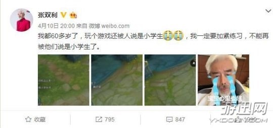 其实张双利为王者荣耀发微博好几次了,还被身边人揭发拍戏间歇就在玩王者荣耀。张双利素有潮叔之称,六十几岁了像个老顽童,穿着打扮都非常的有范儿,简直是个六十几岁的大潮男,从发型到穿着经常都是超级时尚,这个老戏骨估计很少有人不认识他,几十年演艺生涯从话剧舞台到大屏幕演过不少经典角色。最近几年热播剧《打狗棍》、《刀客家族的女人》、《背着奶奶进城》、《左轮手枪》、《远大前程》、《转角之恋》都有他的身影。