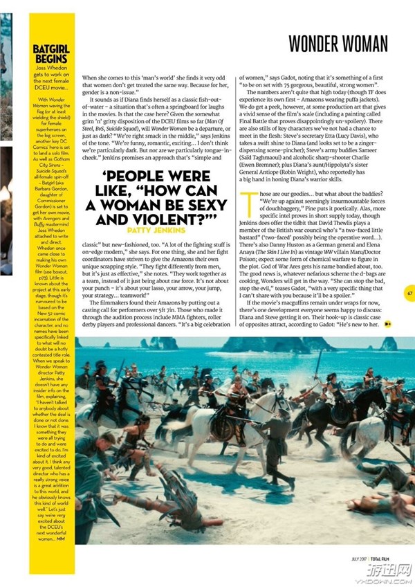 《神奇女侠》上映的日子越来越近了,电影的相关宣传也是铺天盖地而来。近日,《Total Film》刊登了一组《神奇女侠》的新剧照,以及女神登上其他杂志的封面图。戴安娜公主也不愧“女神”之名,肤白貌美大长腿,看得让人直流口水啊!