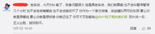 面对IM的不同寻常的语调,网友们炸开了锅。随后IM的微博被广大网友和OMG的粉丝给爆破了。网友纷纷指责IM官方微博太不会说话,赢了就这里冷嘲热讽,毕竟官方微博作为俱乐部的一个对外的门面,太上不了台面。