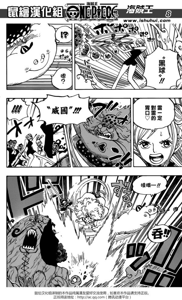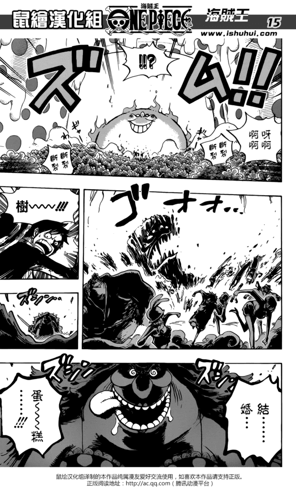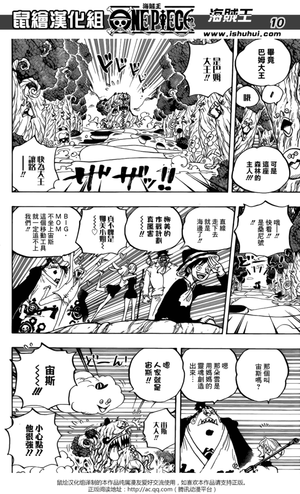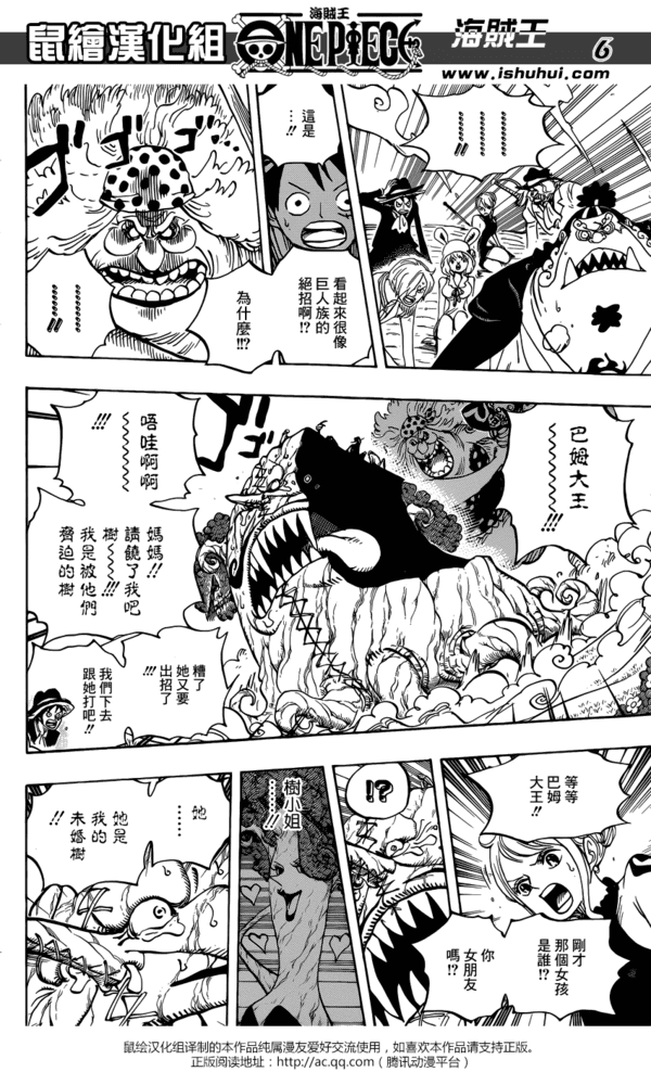 海贼王漫画第874话已经更新,本期漫画名为巴姆大王。大妈手持“拿破仑”逼近草帽一伙,并使出巨人族的招式——艾尔巴夫之枪“威国”,巴姆大王的树干瞬间被挖走一块。娜美利用巴姆大王很爱未婚妻的感情,很同情他,并希望他们能够再次见面,希望巴姆大王一定要活下去,巴姆大王被感动,使出全身力气继续逃跑,可是,最后还是被大妈身边的普罗米修斯用火烧巴姆大王的全身。