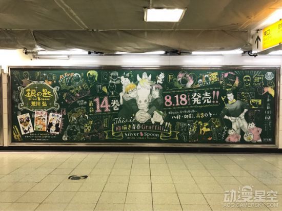 由荒川弘创作的描绘农业高中学习生活点滴的青春漫画《银之匙》近年来的连载可不太顺利,频繁休载导致单行本总也凑不起一本的内容,第14卷也一直无法发售。如今,《银之匙》单行本第14卷终于确定于2017年8月18日发售。官方为了宣传和纪念这得来不易的第14卷,特地在东京JR新宿站设置了“黑板报风格”巨幅海报。我们一起来看看吧。