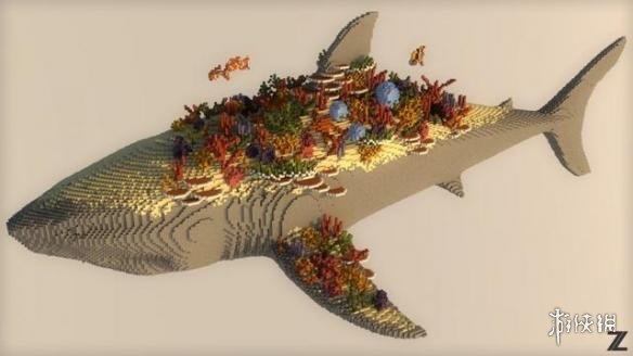 玩家Zeckou在24小时内制作出这条巨大鲨鱼,鲨鱼身上遍布珊瑚礁。