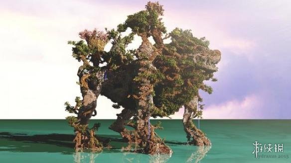玩家BzUrQ用岩石和树达成的狮子状野兽,耗费将近4-5天时间建成。