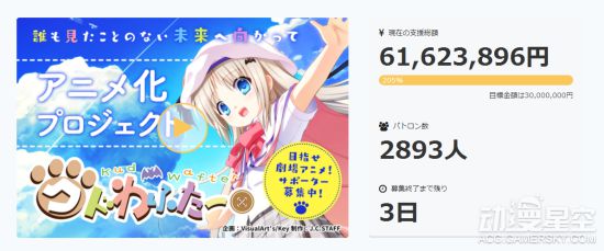 距离《库特wafter》众筹结束还剩下3天,此时的募资人数为2893人,金额已经高达6162万日元,超过了最终目标定下的6000万。按照之前的计划,当众筹金额达到6000万日元时官方将推出时长40分钟的剧场版动画,在粉丝们高涨的热情和财力下这个惊喜终于成功兑现了。