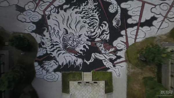 从俯瞰图中我们可以看到这是一幅浮世绘风格石绘,展示的是路飞与魔兽之间的战斗,整体的效果非常的赞。目前观赏活动已经开始,10月7日-22日都可以前去京都的大觉寺参观这幅巨型石绘。