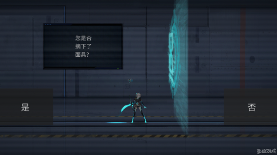 接着我们被传送到了一个奇怪的房间,问了一些奇怪的问题,除了是否觉得冒险乐趣大于打斗这种很正常的问题,还有什么你是否摘下了面具等等哲学问题,最后判定笔者是个只适合简单难度战斗力为3的小渣渣……回到游戏首页后然后开始强制让我们带上旁白君一起玩游戏!