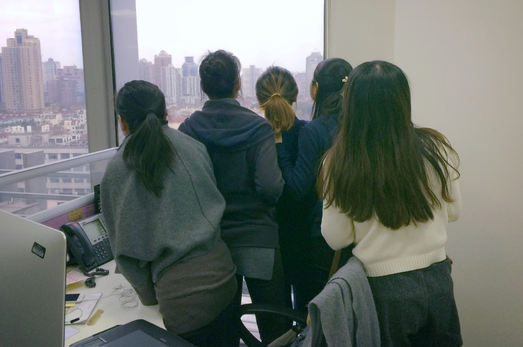 昨晚刚开始下雪的时候办公室的北方人也趴在窗户上拍照。