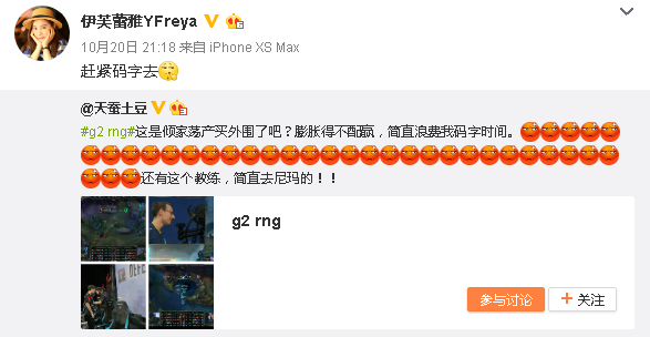 但这些都只是粉丝愤怒之下的口不择言或者在为RNG输比赛找一个合理的理由。知名网络小说作者天蚕土豆也是其中一员。