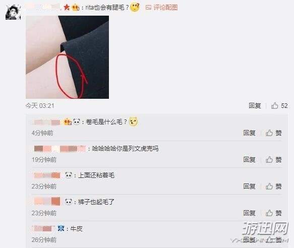 一位网友的眼睛非常尖,他很好奇的说:“Rita也会有腿毛?”