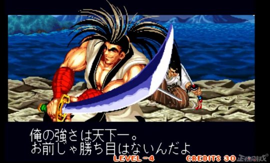 《侍魂》的人气主角霸王丸,自从一代在开场动画里斩断石灯台和两人合抱的大树后,就奠定了他霸王的地位,成为不少玩家小时候的偶像。霸王丸使用兵器在游戏里叫河豚毒,是常见的武士刀类型中的打刀。