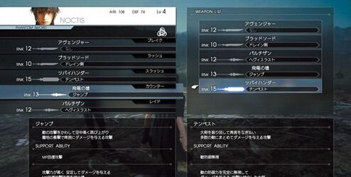 与普通攻击用武器不同,诺克提斯还有着叫做“幻影剑”的特别力量,最初虽然只有一把,但是通过探索达斯卡地区可以发现新的剑,从而使出更强力的技能。