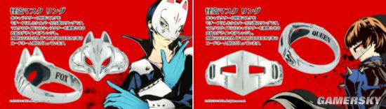 与Artemis Kings合作的怪盗团戒指采用925银制作,造型则根据怪盗团成员的人格面具而不同。戒指里面还刻着成员的代号,比如FOX\QUEEN之类的。戒指包括主角、高卷杏、坂本龙司、喜多川佑介、摩尔加纳、新岛真、佐仓双叶、奥村春和明智吾郎几位角色。