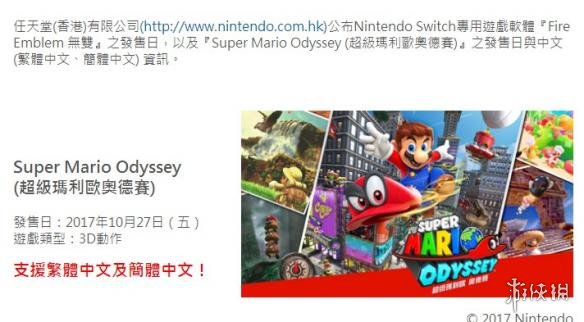 而现在根据香港任天堂官网网站消息,《超级马里奥:奥德赛》支持简体中文/繁体中文!游戏将于2017年10月27日发售。