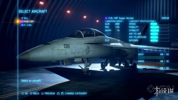 接下来在看完游戏的任务简报之后,玩家就可以进入选择战机界面,选择将要驾驶的战机类型以及携带的弹药类型,选择完成后,玩家就可以在航母上完成弹射起飞,去任务区域执行任务了。