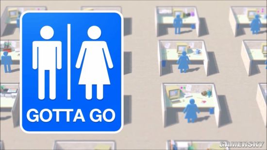 听上去似乎很简单,实际上在《我得走了》,玩家需要扮演一名公司的小职员,在尿急去上厕所的过程中,会有同事们不断给你找麻烦,跟你搭话、拖延时间。而你要做的,便是在膀胱爆炸之前抵达厕所,想尽办法躲开或甩开他们,比如躲在花盆和桌子后面,或者是语言辱骂驱赶等等。