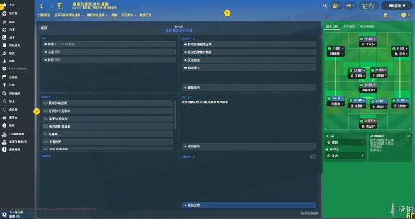 并且进入比赛前的战术界面,可以看到球队教练对你这个阵容的分析,将场上区域划分成了30个区域,分别给出优势区域及其它信息。在球队战术指令方面也增加了近几年非常火的肋部插上的指令,任意球的主罚球员也不再是设置一个球员后,他会包揽场上所有位置的任意球,而是细分了不同的位置。还有进入比赛开始前新增的战术会议以及两个中场新位置——“伪边锋”与“攻击型翼卫”,会有什么新效果也是很令人期待。