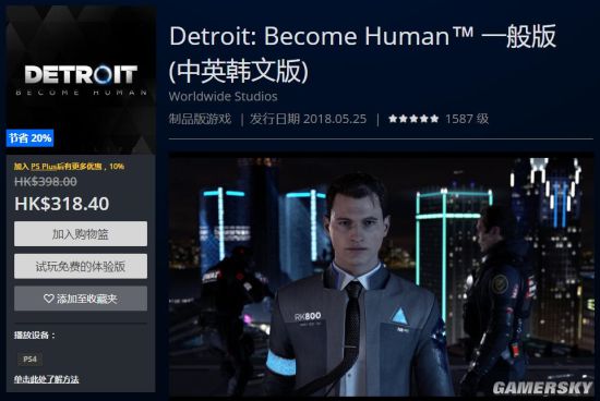 另外,美服PS商店中的《底特律:变人》价格也永降至39.99美元,所以三部作品合集相当于购买《底特律:变人》免费送《暴雨》和《超凡双生》,应该说是比较划算的。而港服PS商店中的《底特律:变人》则没有降价,即使目前正在进行8折优惠活动,也需要318港元(约合人民币279元)。
