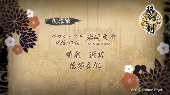 Rejet社长及知名女性向IP制作人、作词家岩崎大介先生对《执剑之刻》这一作品进行了进一步介绍: 这是与一家中国公司拾梦文化(Xiimoon)联合创作的和风传奇题材的手游。《剣が君(剑为君舞)》的原班人马再次集合,并聚集了著名画师和声优阵容,力主《执剑之刻》的角色和剧情设定,而拾梦文化更是凭借高超的开发实力,让每个角色立绘在游戏中都栩栩如生的动起来。