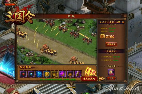 萌乐网新游《三国令》征战系统还设有“兵种强化”模式,玩家可自由为每个兵种提升等阶,增加兵种的固定属性,高阶兵种甚至可以习得兵种技能,可大幅增加伤害提升玩家固定收益。游戏中,玩家可以通过野外打怪、副本掉落等获取“征战号令”,当玩家集齐一定数量的“征战号令”后,则可以为兵种提升等阶。