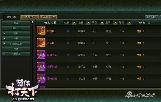 在新版的交易市场中,通过大量的分类标签,玩家可以快速找到想要购买的道具,找到所需道具平均耗时不超过五秒!而且在装备寄售中,玩家还可以根据门派、等级以及性别、部位精确查找所需要的装备,可以说比之前版本人性化了不止一点点!