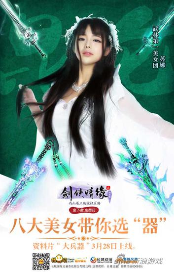 正统武侠页游51wan《剑侠情缘2网页版》新资料片“大兵器”将在3月28日正式上线,八大美女,带你选“器”!全新“兵器谱”玩法开启神器套装时代,中樱桃八位签约艺人组成“武林第一美女团”倾情出镜,演绎高颜值的剑侠江湖!
