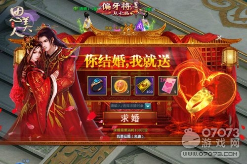 陪伴是最长情的告白,和心仪的人在江湖中看遍花开花落,看尽潮起潮落,也许是每位江湖人所向往的。萌乐网新游《思美人》姻缘系统上线,你可以向指定对象发起求婚,也可以在江湖发布征婚公告。在这里,不需要你有房有车有钻戒,只要你一片赤诚之心,就可以牵着TA的手闯荡江湖了。