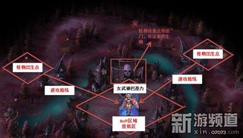 主要任务就是守护女武神巴基力,Buff区域,女武神巴基力释放神力,为玩家提升攻击,防御,间隔回血。