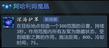 小鱼人的魔晶让他拥有了一个形同本身大招的技能深海护罩,让其中的友方英雄隐藏,同时获得生命恢复和移速加成,相当于让在范围内的所有友方英雄全部暂时拥有了小鱼人的大招,集救人、恢复、逃生于一体,尽管冷却时间很长,但是基本可以当做小鱼人的第二个大招使用。