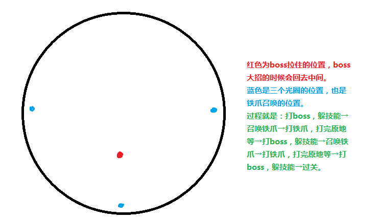 光圈召唤铁爪以后,除MT全员回光圈打铁爪,打完不要动,然后等boss读大招。读条是,MT也要回位。