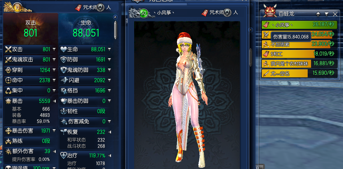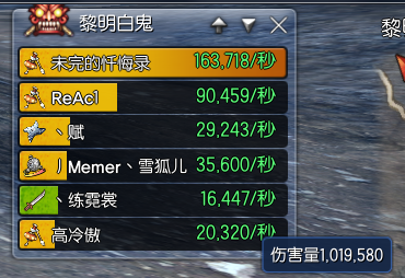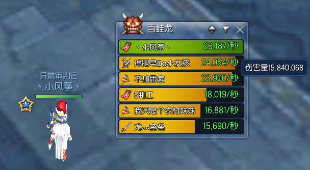 下面也看到了一起打BOSS时,高秒伤的人物,参考一下数据也好。