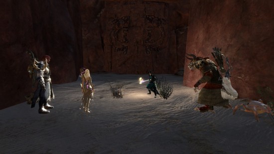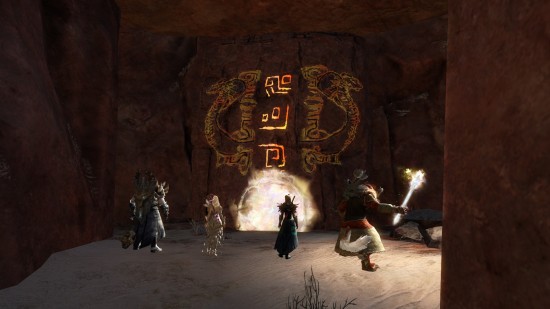 欧格登认出了屏障的来头,它属于一个名为“被遗忘者”的蛇裔种族。他打开古老典籍里的蜡制封印之后,出现了一个魔音幻像,它是辞世已久的古代英雄托雷·奥莎。玛乔丽和我帮助魔音幻像重现了古代的超越试炼,他给予了我们神圣之火作为回报。欧格登相信,神圣之火可以打开神秘洞穴的封印,让我们能够继续追溯凯西的历程。