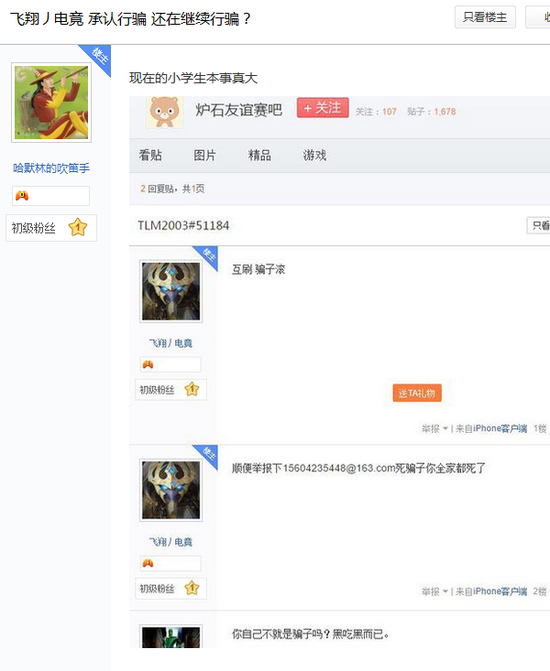 然而小学刚毕业不愧是小学刚毕业,@飞翔丿电竟 一看吧友们居然对待自己态度如此,直接翻脸删除了自己所有的道歉信息,并开贴怒肛众被骗玩家和吃瓜群众。