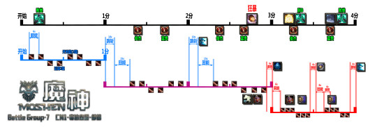 黑横线为整体时间轴,一共4分钟大狂暴。 在2分50秒左右我标记了个小狂暴是团队要求的最低水平。即:2组近战组吃到第2次顺劈时必须打进小狂暴30%血。