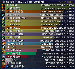 解决的办法是利用躯不坏天赋,去贼组吃3刀,这样可以提高不少HPS。开荒过程中几次我利用这个方法能把HPS抬到5万左右。不过视频中出于保守的考虑,我没这么做,因为分摊后接石化那一波,站位不好可能会被队友炸死.。.