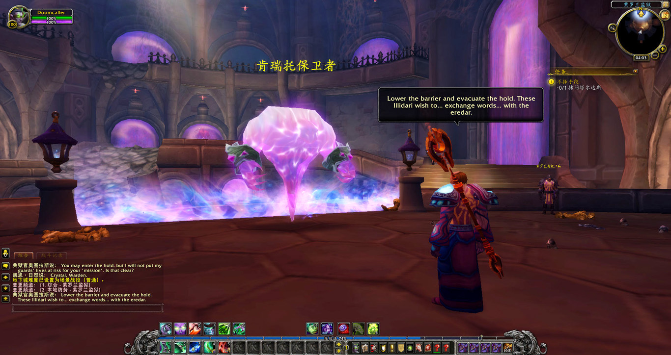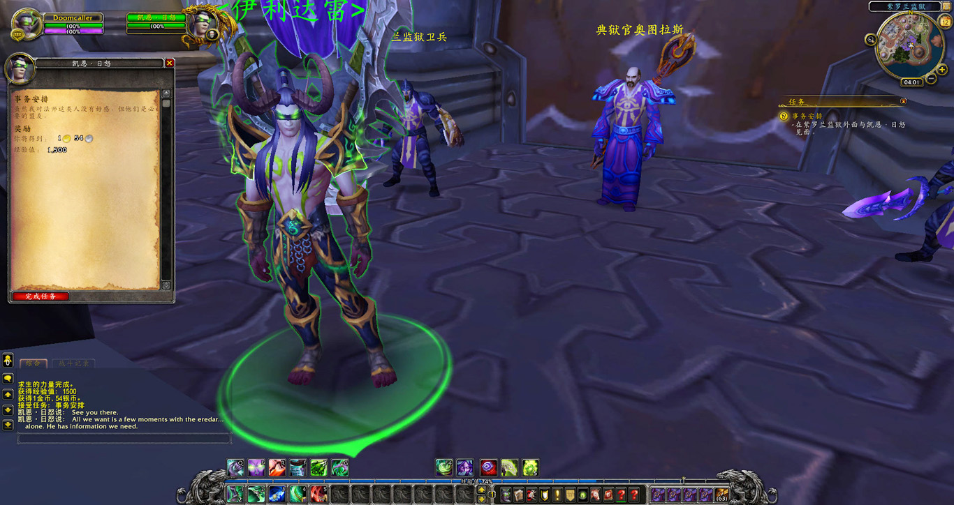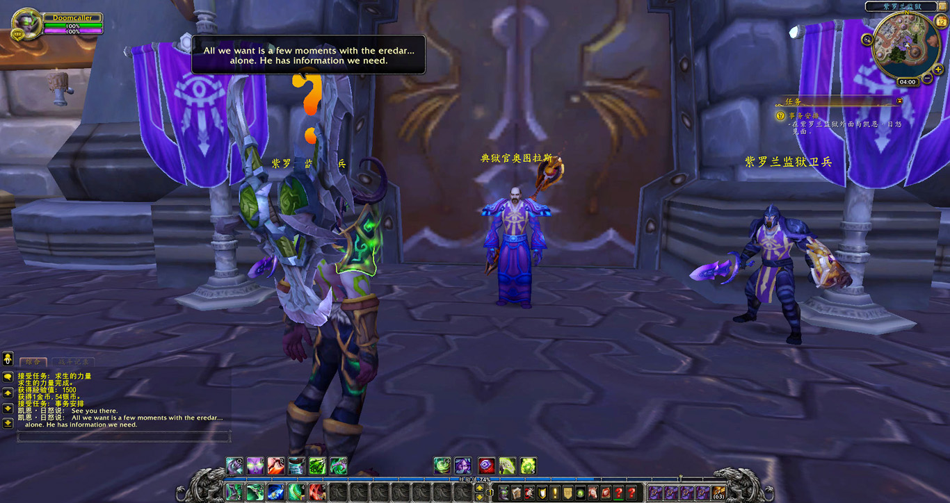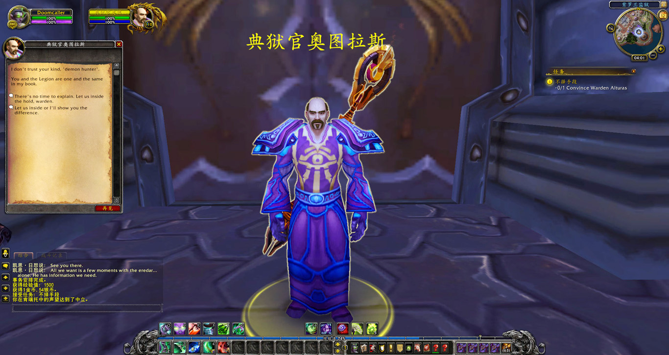 瓦雷迪斯曾是我们的首席训练师,他为伊利丹大人训练了众多恶魔猎手。多年前他同黑暗神殿一同陨落。但这只是故事的上半部分。考瓦斯在守望者地窟亲眼看见瓦雷迪斯与军团的恶魔们一道离开,他手里的战刃还涌动着一种前所未见的力量。凯恩说他打听到达拉然的紫罗兰监狱里囚禁着一个艾瑞达人的首领,也许他知道瓦雷迪斯去了哪儿。不过我们得说服典狱官同意我们与他对话,毕竟在别人家的地盘就得找章办事。既然如此我也不想多做耽搁,凯恩立刻随我前往紫罗兰监狱。