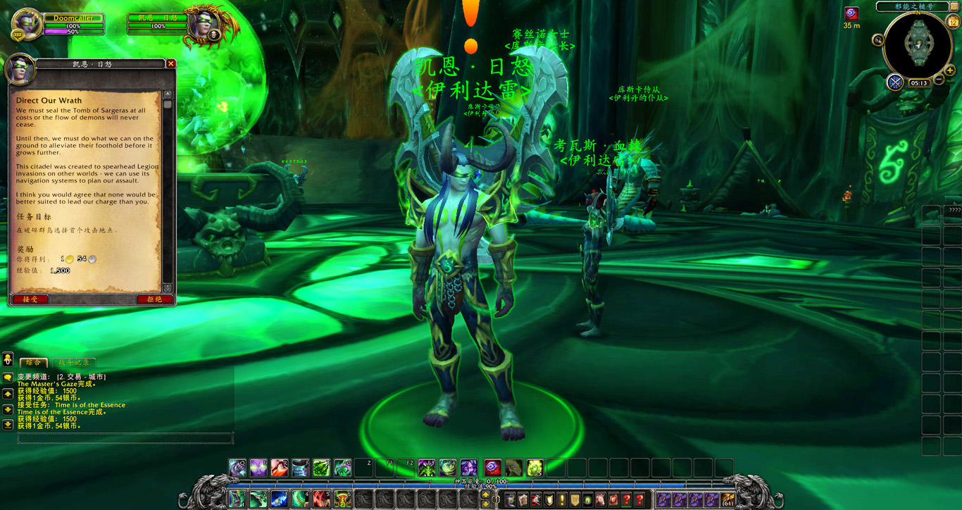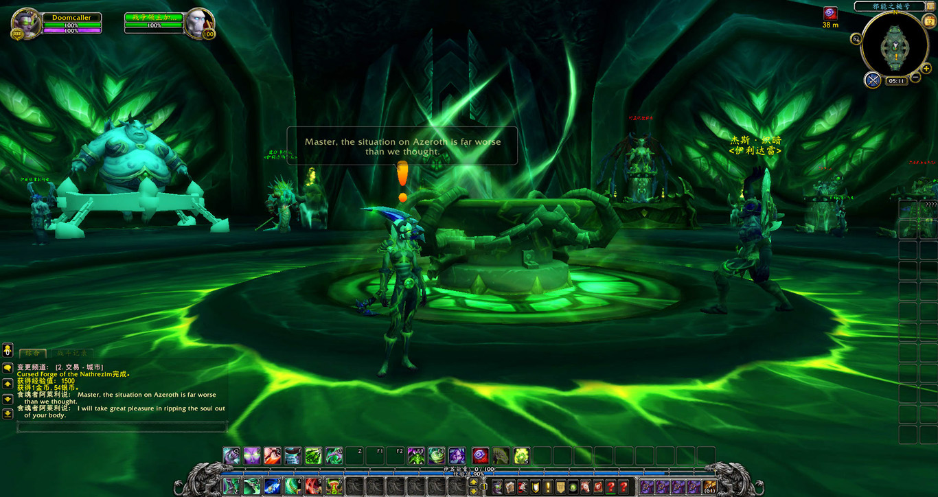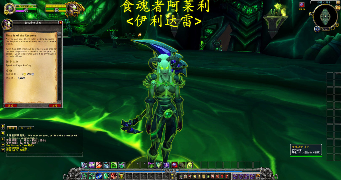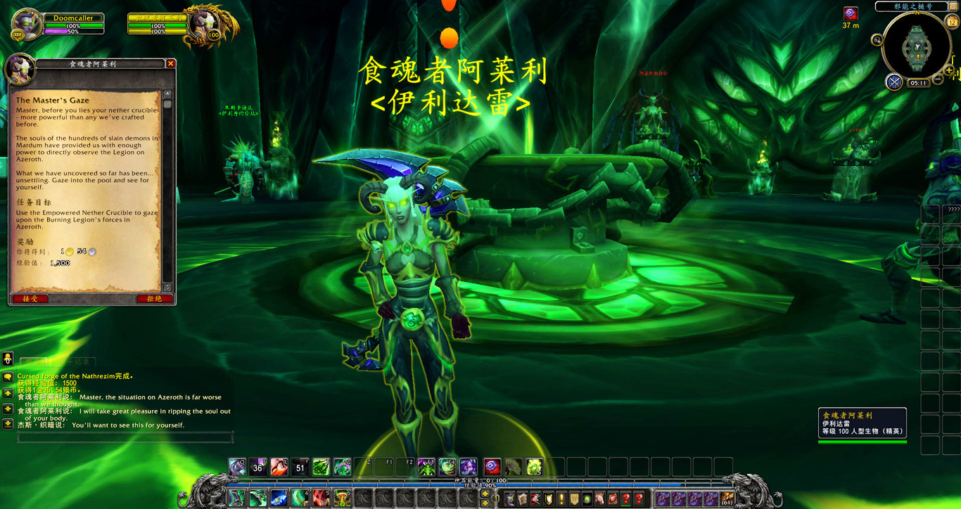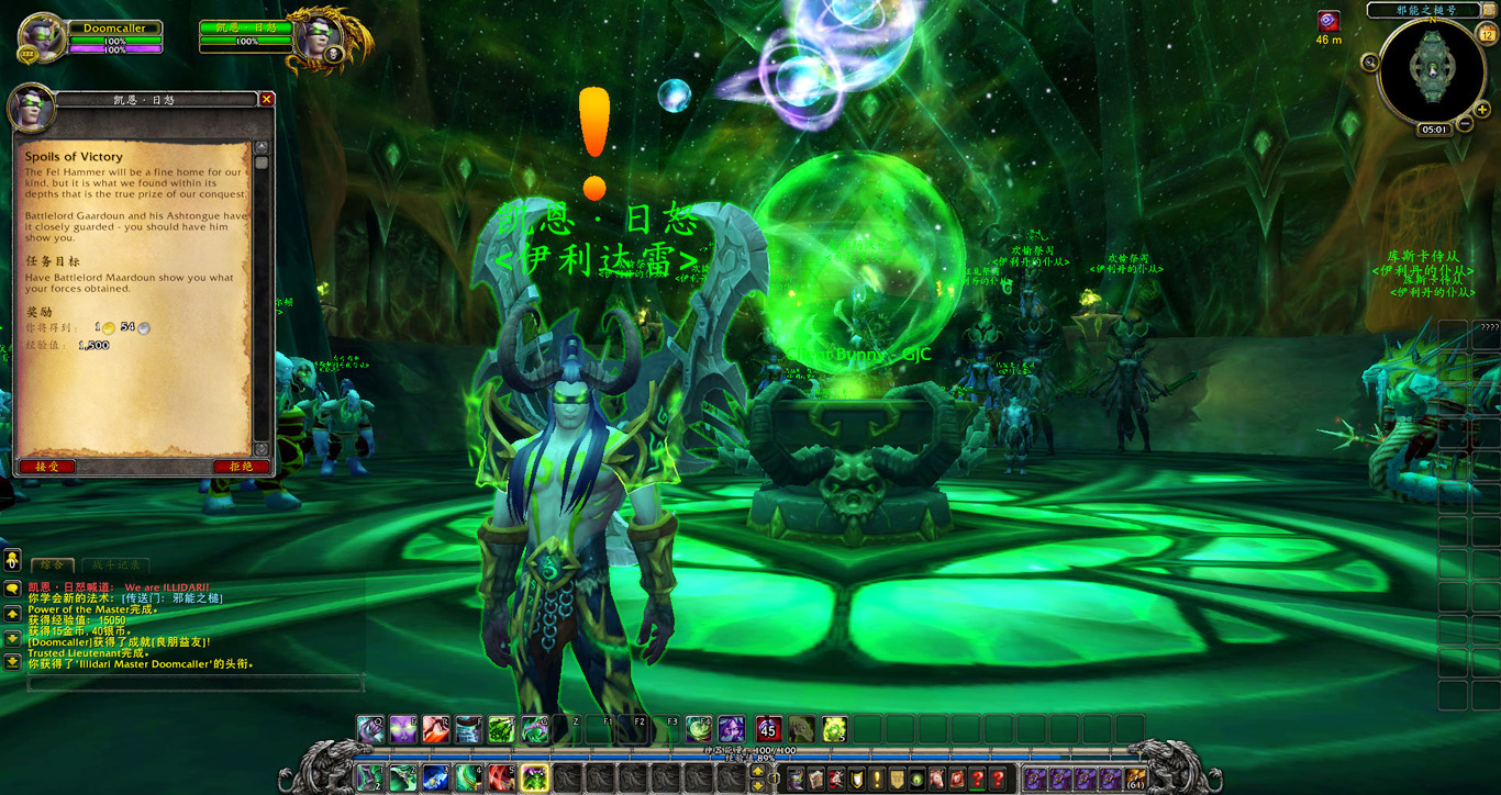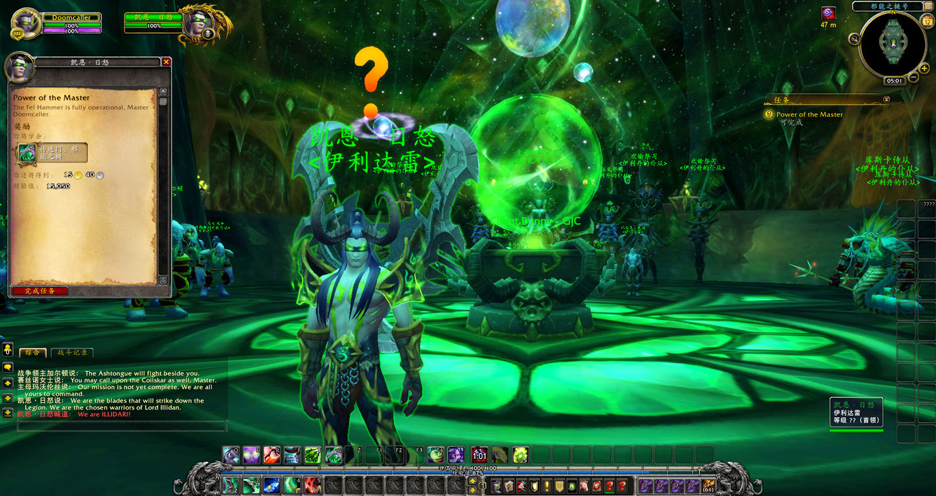 同时他也报告了一个问题。在我们返回黑暗神殿并被玛维囚禁的这些年里,滞留在马顿的伊利达雷残部忠实的履行了他们的职责,守住了邪能之锤。如今我们已经掌握了舰上大部分资源,但若想完全控制邪能之锤,就需要有军团领主的标记。很幸运,我手上的欺诈者双刃就有这样的标记,因此需要用我的力量将邪能之锤彻底置于伊利达雷的控制之下。