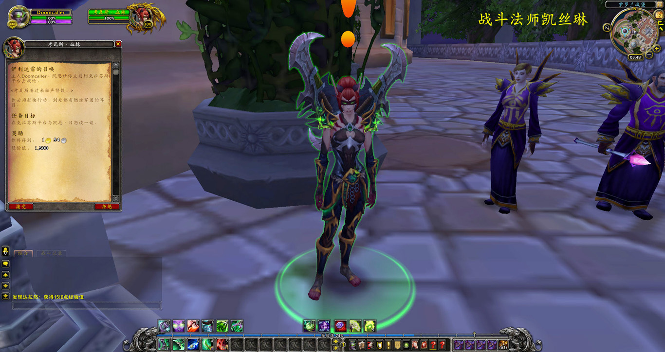 经过漫长的岁月,我们终于离开了守望者地窟,重获自由。玛维独自去追缉古尔丹了,但我并不为她担心。那个暗夜精灵的本事大的很。大法师卡德加的传送术将我们带到了达拉然,随后在他所谓的“肯瑞托议会”上将如今的形势对我进行了说明。大敌当前,我同意与他的达拉然进行合作,共同对抗燃烧军团的进犯。