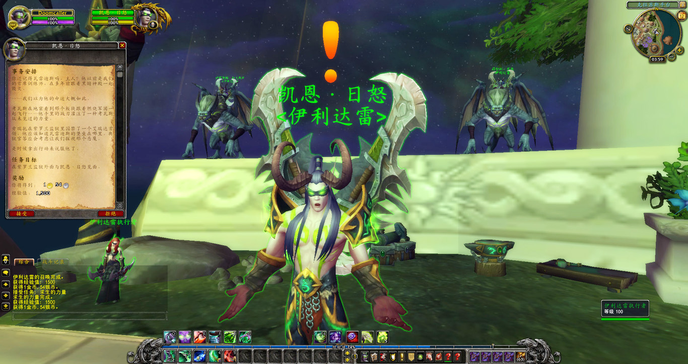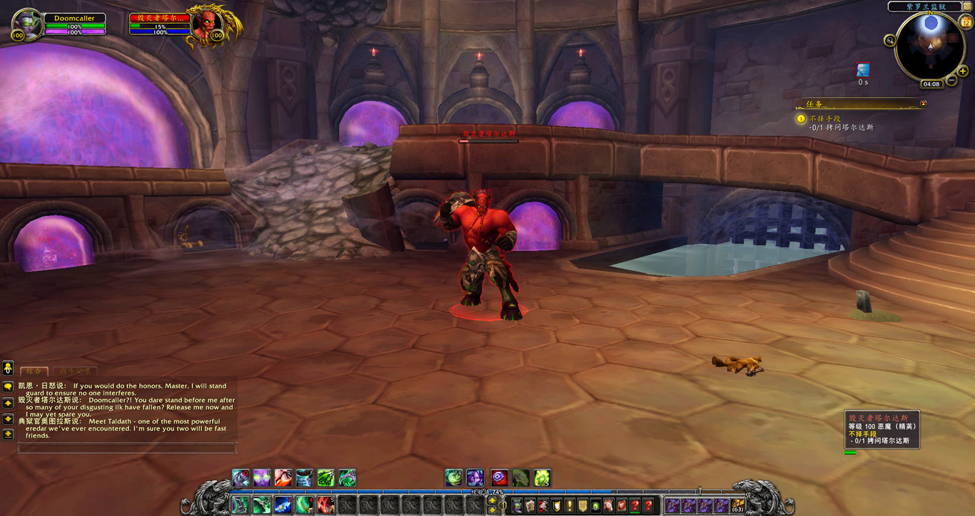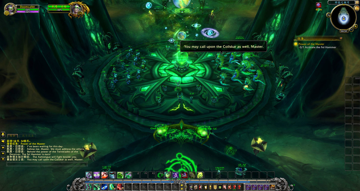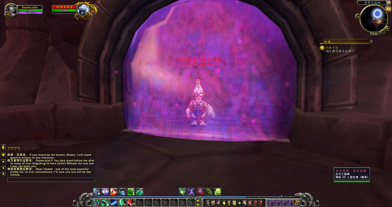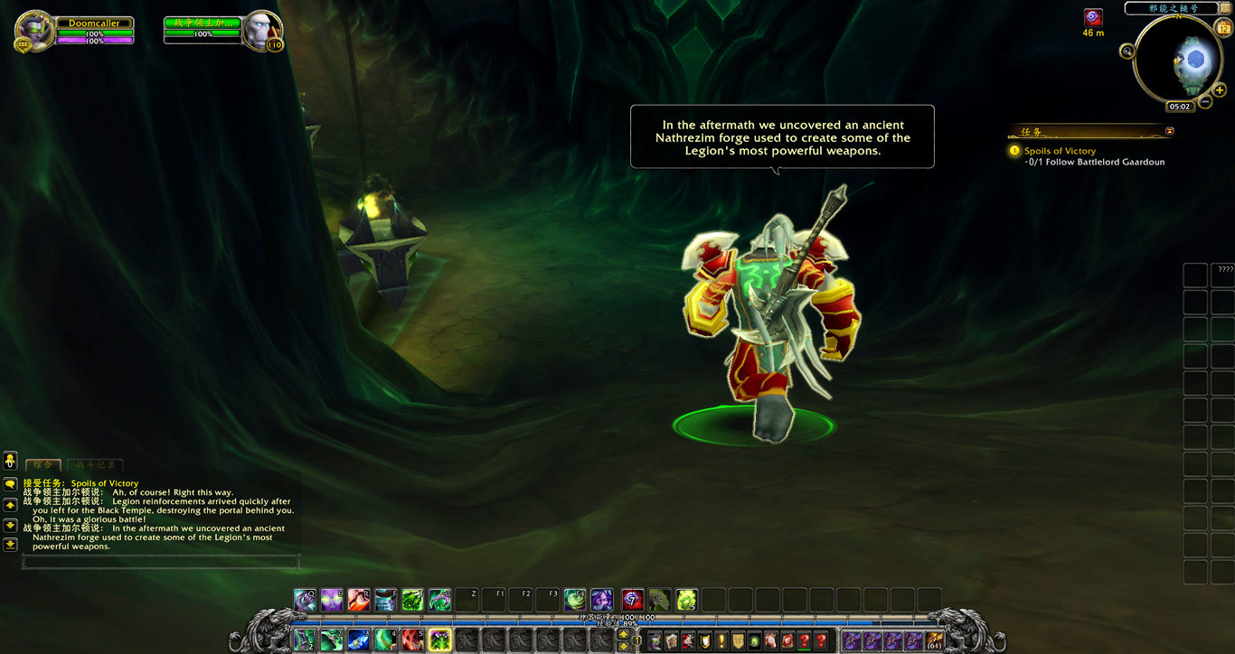 卡德加为了与我们合作顺利,协助希瓦魔开启了一道从邪能之锤直达达拉然的永久传送门,他也给我们带来了最新的消息。