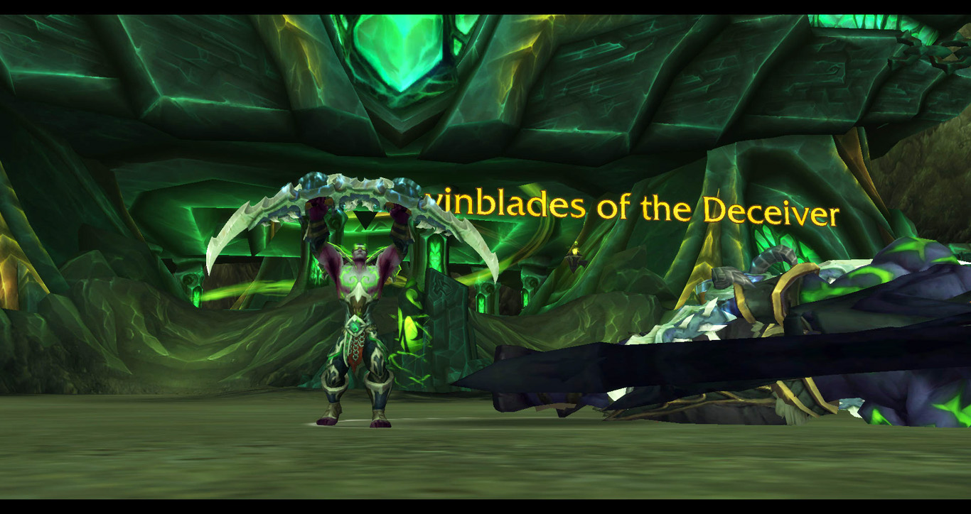 但狂暴的瓦雷迪斯在得到了恶魔力量的加持后逐渐变得毫无章法,最终我抓住机会将他斩杀。欺诈者的双刃归我所有了。