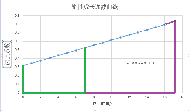 野性成长的治疗递减直线在1楼已经有所体现。野性每一跳的治疗量,在法强绿字等属性固定时,只与它的剩余时间有关,与前面有几跳,后面有几跳,怎么到达这个剩余时间的,都没关系。