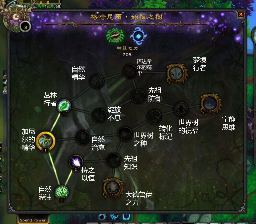 丛林之魂:可以选择强化回春术,愈合或者野性成长,在不过量的前提下,应该是强化野性成长最划算。由于小迅捷的cd延长,丛林之魂的buff效果也有所提高,如有长时间或者近30s爆发的场合,可能选择丛林之魂。