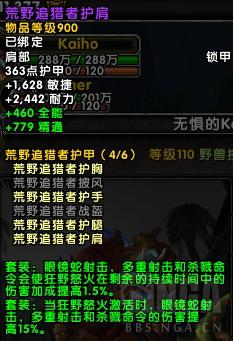 T20 4件套:当狂野怒火激活时,你的眼镜蛇射击,多重射击,杀戮命令伤害提高15%。