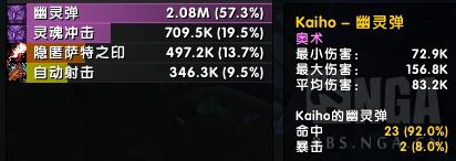 它有2段伤害,第一段伤害占比模拟了很多次都在5%~7%,第二段占比在2%~4%之间。第一段伤害也是多HIT,一般在20次攻击左右,急速越高次数越多。第二段受眼镜蛇射击影响,触发一般不超过10次。