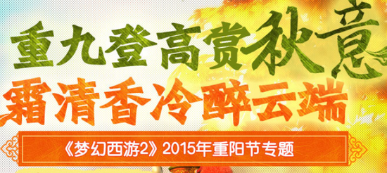 1、重九登高赏秋意!《梦幻西游2》口袋版2015重阳节活动将于2015年10月14日12:00至10月15日12:00在部分服务器测试,2015年10月20日12:00至10月24日24:00在全部服务器放出。详细介绍>>>