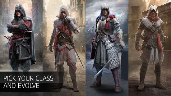 玩家可“狂战”、“影刃”、“千面”和“神偷”当中选择自己的职业,并且从战利品中挑选服装和武器例如传奇刀剑和经典袖来自订刺客,让自己的刺客从新手进化成大师。