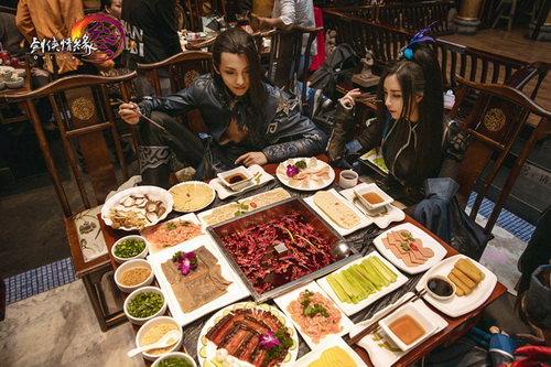 唐门三人组将带领侠士游历江湖,在茶馆看戏喝茶,跟川剧大师学变脸,甚至开一桌麻将与当地的国粹爱好者PK竞技。走遍小吃街,品味那些流传千年的美食文化。侠士不用担心营养跟不上,还有串串、火锅、三大炮、兔头、三合泥、糖人等众多让人嘴馋的美食。