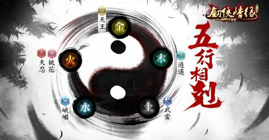 五行间相生相克的回圈与传承,巧妙的兼顾了动态的平衡,更增加了游戏的策略性和趣味性。像《剑侠情缘手机版》中‘桃花’、‘天忍’门派属火,被水系的‘峨嵋’所克制。所以PK之际,避免被水系的‘峨嵋’女神纠缠,尽量选择土系的‘武当’。而门派属性之间是环环相扣的,精妙的‘五行系统’设定,当玩家遇上敌对帮众时,先攻击被你所克制的门派,无疑能增加不少的胜率喔!